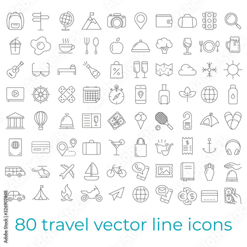 Set of vector line icons and symbols in flat design travel with elements for mobile concepts and web apps. Collection of travelling icons for infographic, logo, website, catalog, blog, typography.