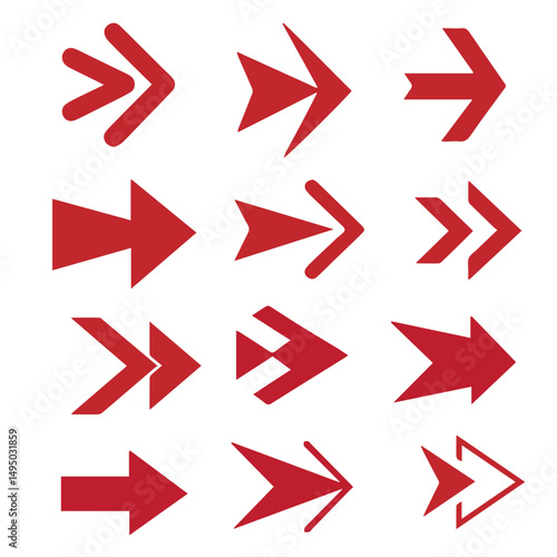 set of vector red arrows