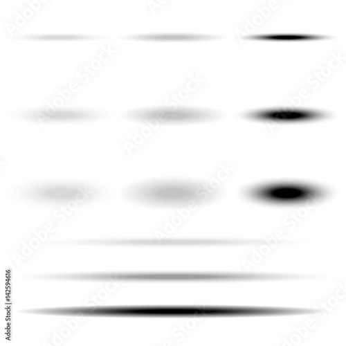 Set of vector shadows with soft edges. Transparent oval shadows. Collection of elements for design.