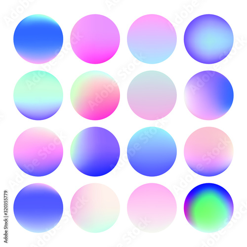 Set of vibrant gradient spheres or circles on white background.