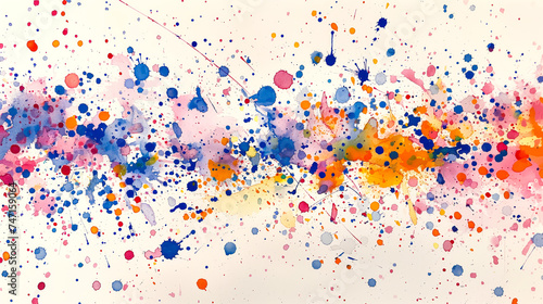 Set of vibrant paint splashes in various colors, creating an artistic display on a clean canvas