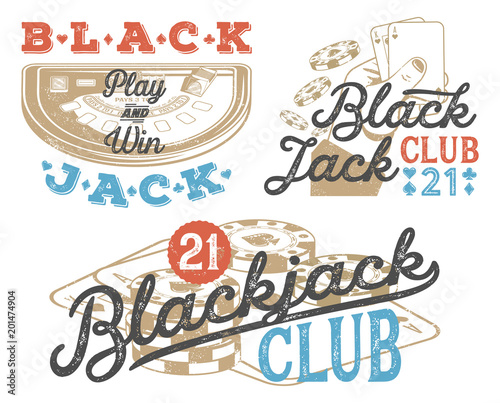 Set of vintage Blackjack badges for print on T-shirts, printed products and publications on the Internet. Vector illustration