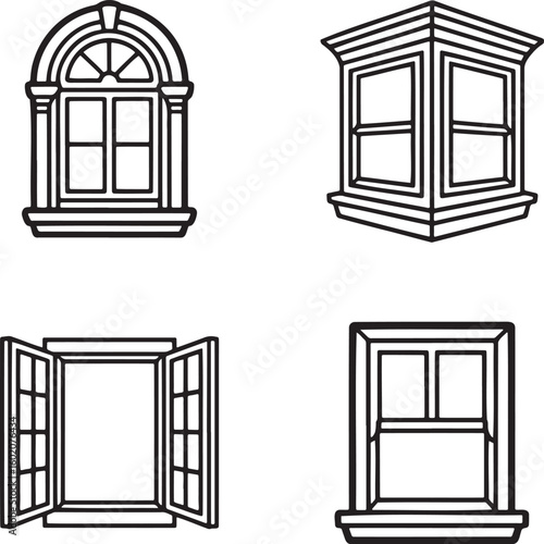 Set of Vintage Window Outline vector illustration isolated On Transparent Background