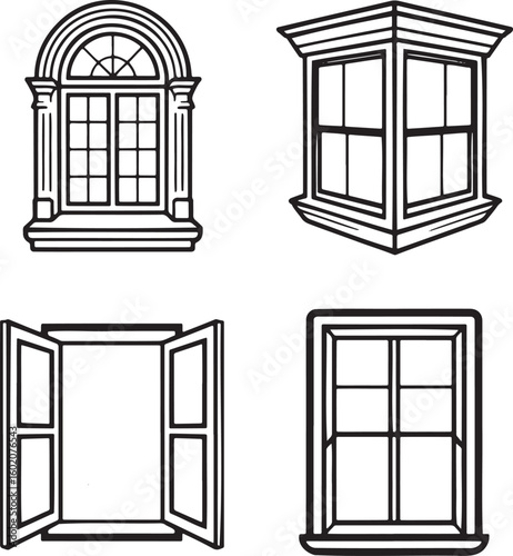 Set of Vintage Window Outline vector illustration isolated On Transparent Background