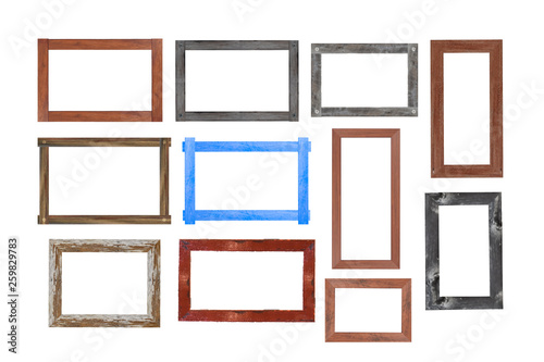 Set of Vintage wood picture frame isolated on white background. with clipping path.