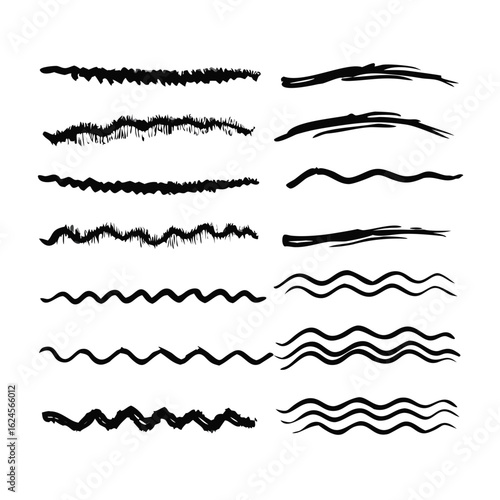 Set of wavy horizontal lines. Marker hand-drawn line border set and scribble design elements. Lines hand drawn paint brush stroke. Vector set isolated .