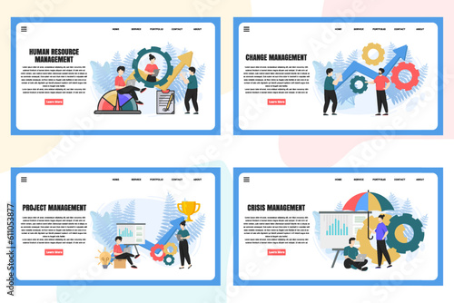 Set of web page design templates for Management web page composition with Leadership, Time Management, Risk Management and more Modern vector illustration concepts