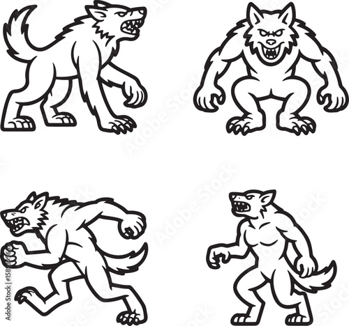Set of Werewolves Outline vector illustration isolated On Transparent Background