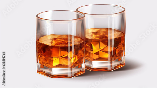 Set of Whiskey Glasses with Reflection on Isolated Background