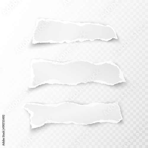 Set of white ripped pieces of paper on transparent background. vector illustration