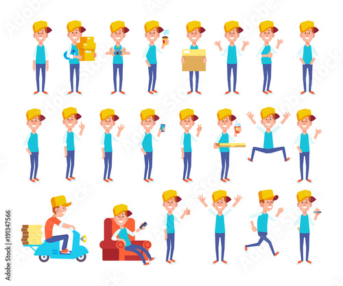 Set of young man in different poses. Vector cartoon character in a flat style for your projects.