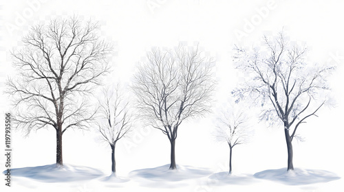 Set off different winter tree covered with snow isolated on white or transparent png. Sunweave. Illustration