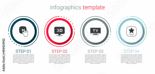 Set Online play video, 3D word, Smart Tv and Walk of fame star. Business infographic template. Vector