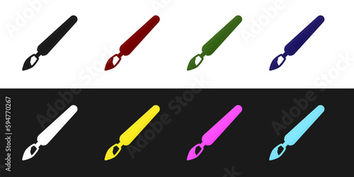 Set Paint brush icon isolated on black and white background. Vector
