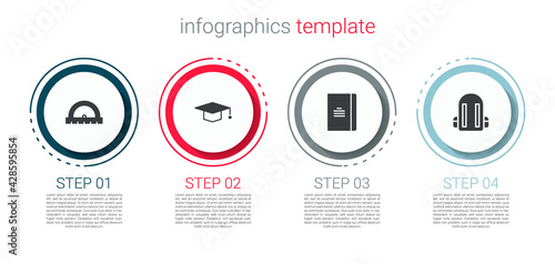 Set Protractor, Graduation cap, Spiral notebook and School backpack. Business infographic template. Vector
