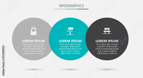 Set Road traffic sign, Train and railway and Waiting hall. Business infographic template. Vector