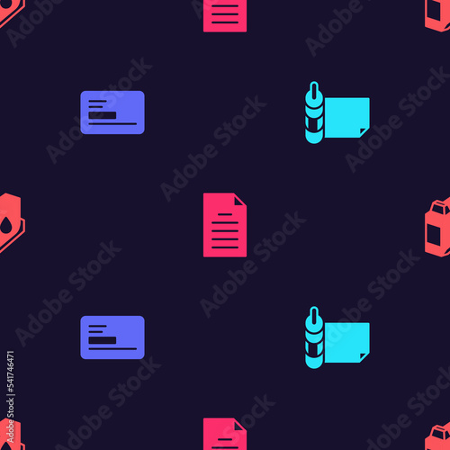 Set Roll of paper, Business card, File document and Printer ink cartridge on seamless pattern. Vector