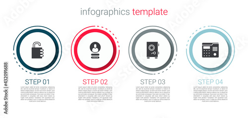 Set Safe combination lock, Create account screen, and House intercom system. Business infographic template. Vector