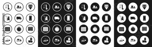 Set Scanner scanning bar code, Delivery cargo truck vehicle, Hand and boxes, Harbor port crane, Mobile phone with app delivery tracking, Conveyor belt cardboard, Laptop and Calendar icon. Vector