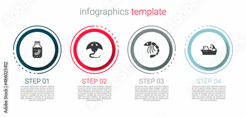 Set Sea cucumber in jar, Stingray, Shrimp and Fishing boat. Business infographic template. Vector