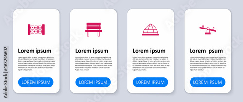 Set Seesaw, Playground climbing equipment, Bench and Education logic game. Business infographic template. Vector