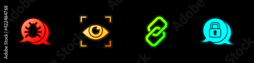 Set System bug, Eye scan, Chain link and Cyber security icon. Vector