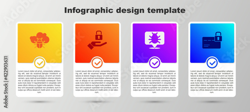 Set System bug on a cloud, Lock in hand, and Credit card with lock. Business infographic template. Vector