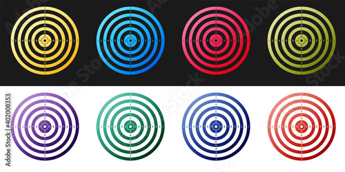 Set Target sport for shooting competition icon isolated on black and white background. Clean target with numbers for shooting range or pistol shooting. Vector.