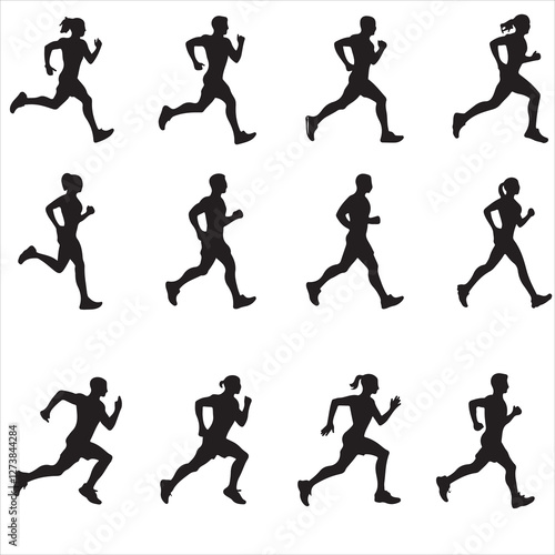 SET VECTOR VARIOUS RUN, RUNNER, RUNNING SILHOUETTES