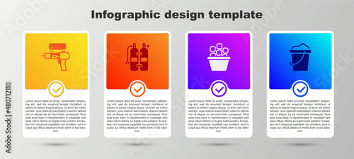 Set Water gun, Aqualung, Ice bucket and Sand in. Business infographic template. Vector