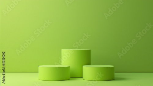 Sets Composition of steps realistic Minimal background. simple podium Lime green color background environment with copy space for product presentation. 3d rendering illustration.