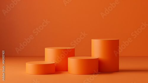 Sets Composition of steps realistic Minimal background. simple podium Orange color background environment with copy space for product presentation. 3d rendering illustration.