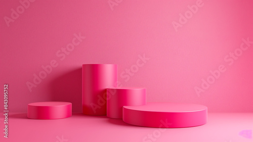 Sets Composition of steps realistic Minimal background. simple podium pink color background environment with copy space for product presentation. 3d rendering illustration.