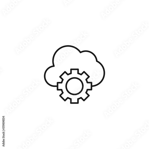 Setting or engineering concept. Vector sign drawn with thin line. Editable stroke. Perfect for web sites, stores, shops. Vector line icon of gear under cloud