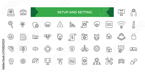 Setup and Setting line icons collection. Operation, gear, processing, tools icons. UI icon set.