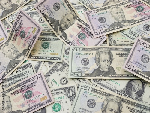 Several $50, $20, $1 and $2 Bills Close Up