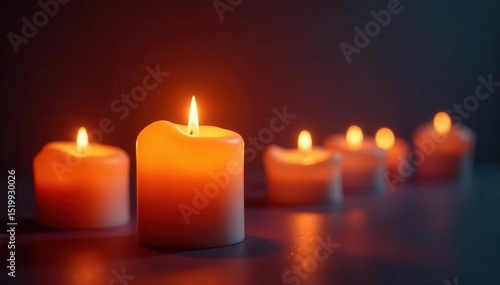 Several candles burn brightly, creating a soft glow , peaceful, warm
