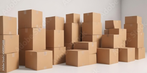 Several empty brown cardboard boxes arranged on a pure white backdrop , shipping, waste