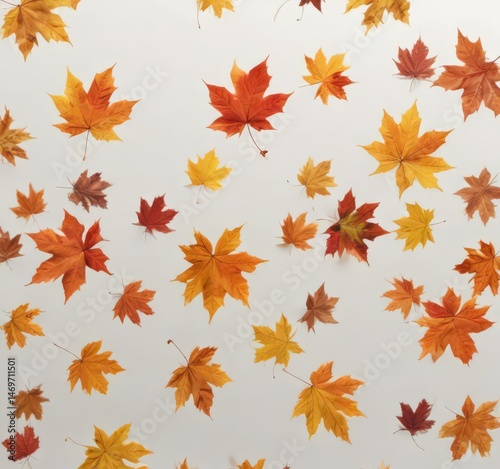 Several falling maple leaves in various shades of autumnal colors on pure white , studio shot, isolated leaves