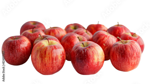 Several red apples are displayed neatly in a row, showcasing their vibrant color and freshness