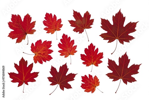 several red autumn fallen leaves