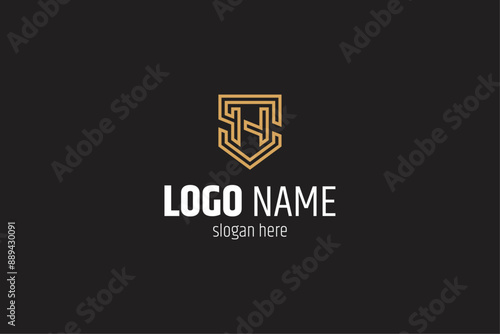 SH, HS letters monogram logo with shield shape combination in line art design style