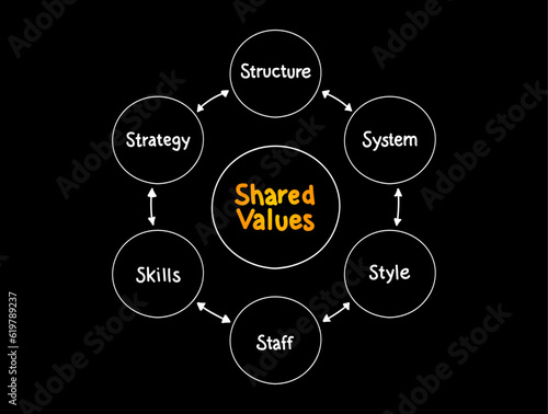 Shared Values (Mckinsey 7S Framework) mind map process, business concept for presentations and reports