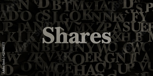 Shares - Stock image of 3D rendered metallic typeset headline illustration. Can be used for an online banner ad or a print postcard.