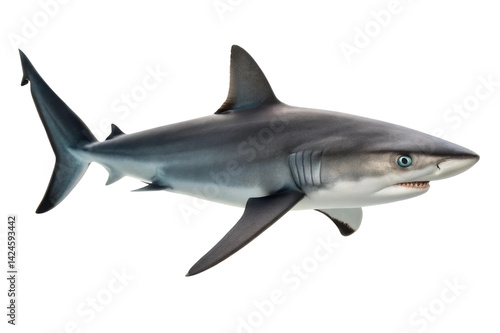 Shark swimming in ocean waters showcasing its sleek body and sharp features for marine education and awareness