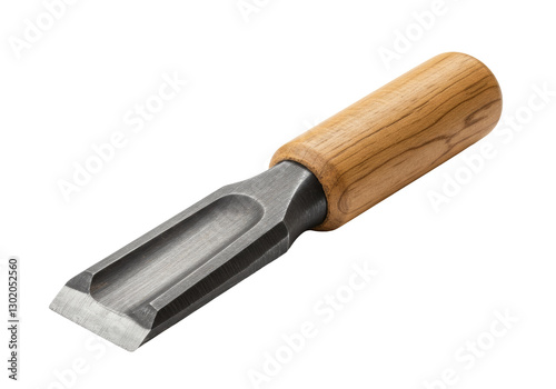 Sharp Woodworking Chisel With Smooth Wooden Handle And Steel Blade On Transparent Backgrounds and