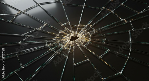Shattered Glass Abstract: A Close-Up View of Broken Glass Fragments on a Dark Background