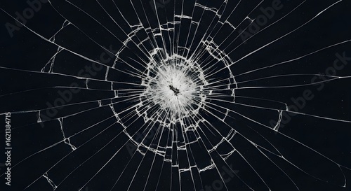 Shattered Glass Surface with Radial Cracks on Dark Background, Symbolizing Damage, Impact, and Fragility