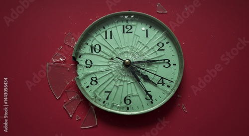Shattered Time: A Broken Clock Against a Crimson Backdrop