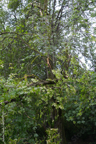 Shattered trees and branches after heavy nightly summer thunderstorm at City of Zurich. Photo taken July 13th, 2021, Zurich, Switzerland.